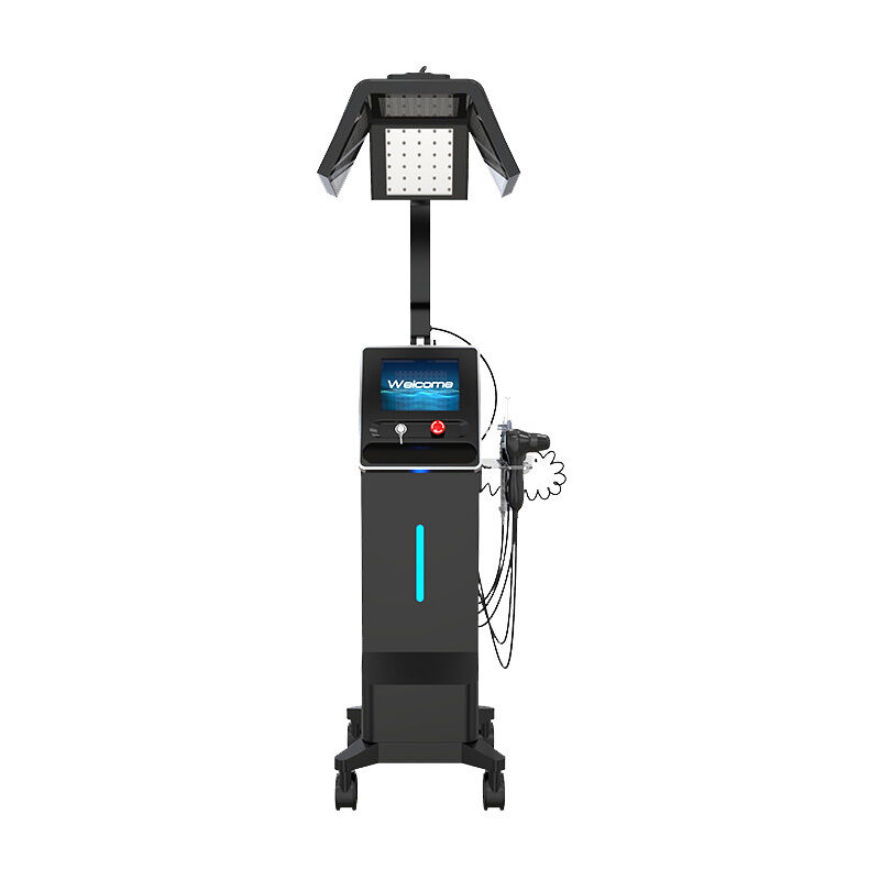 | لوحة المعالجة | 7 أجزاء (لوحات الليزر + فحص فروة الرأس + بندقية الضباب الرش + dr.pen + مشط التردد العالي + مشط التدليك + مقبض بيولوجي) |