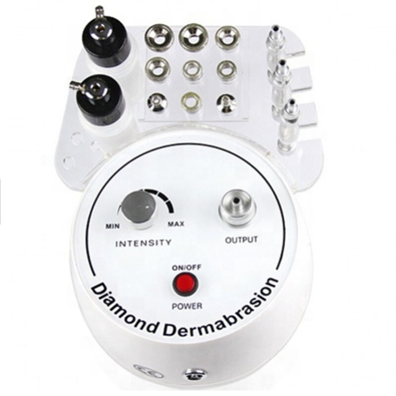 مع الحبوب الماسية في الرؤوس، آلة الجلد w/9 رؤوس، من خلال امتصاص الفراغ، طحن القرنين الميتة والأوساخ من البشرة، وتحسين حالة الجلد، وتقليل فعالا من التجاعيد الصغيرة,يجعل الجلد أكثر خيوطاً و حساساً، يحفز إعادة تولد البشرة، و يزيد من مرونة الجلد، إنه الأكثر أماناًالطريقة الأكثر فعالية لتجديد الجلد.