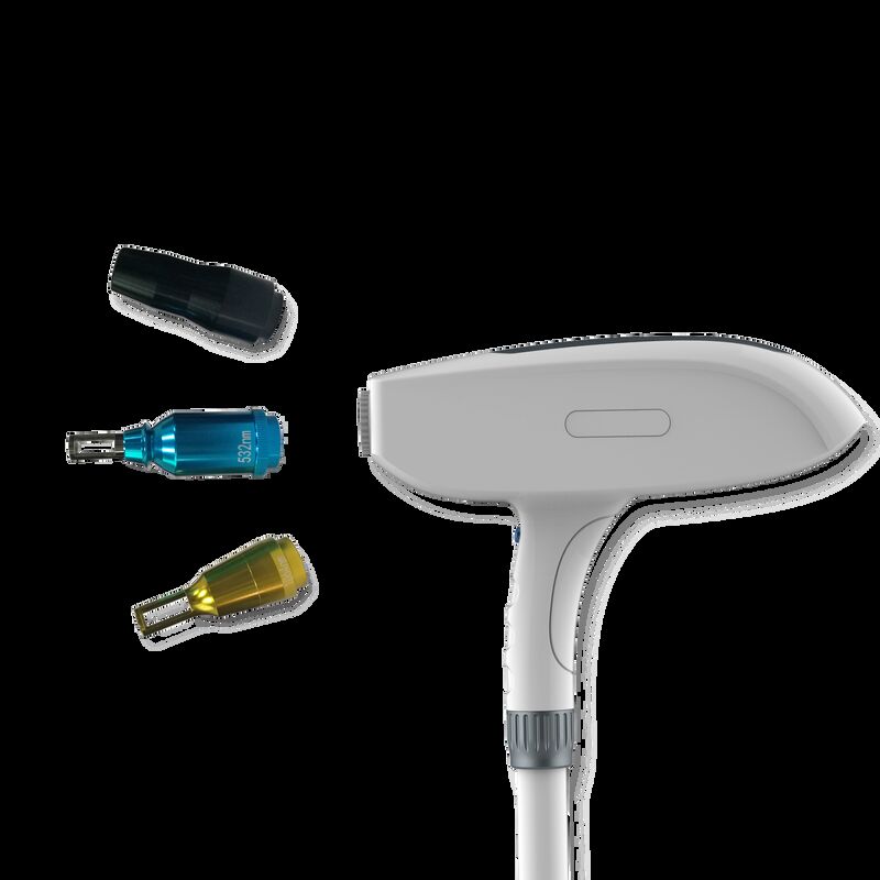 يحتوي الليزر على اثنين من أطراف العلاج القابلة للتبادل ، كل منها يقدم أطوال موجة مختلفة: 1064 نانومتر و 532 نانومتر.